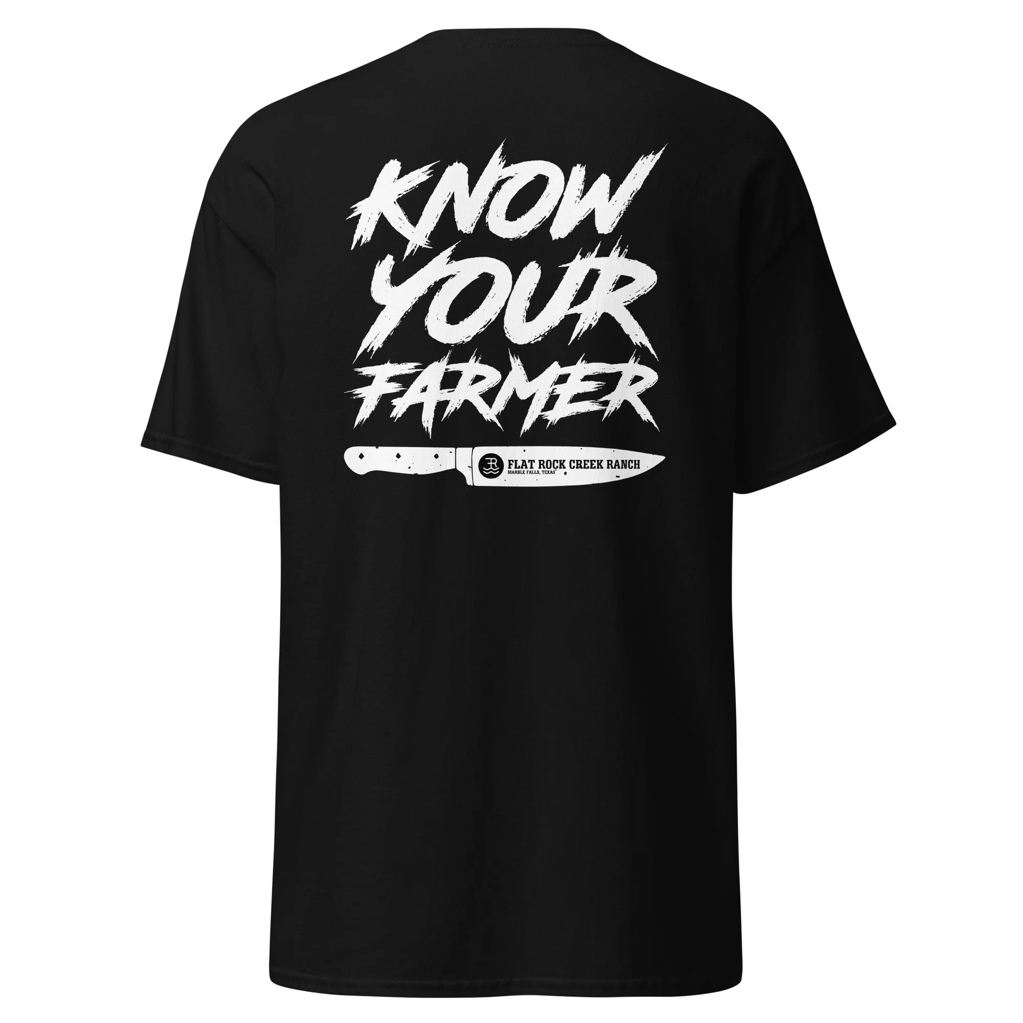 Featuring bold, brush-stroke lettering and a gritty, garage-band aesthetic, the Know Your Farmer tee looks like it belongs backstage at a motorcycle rally… but it stands for something even more powerful: local food, real people, and honest work.